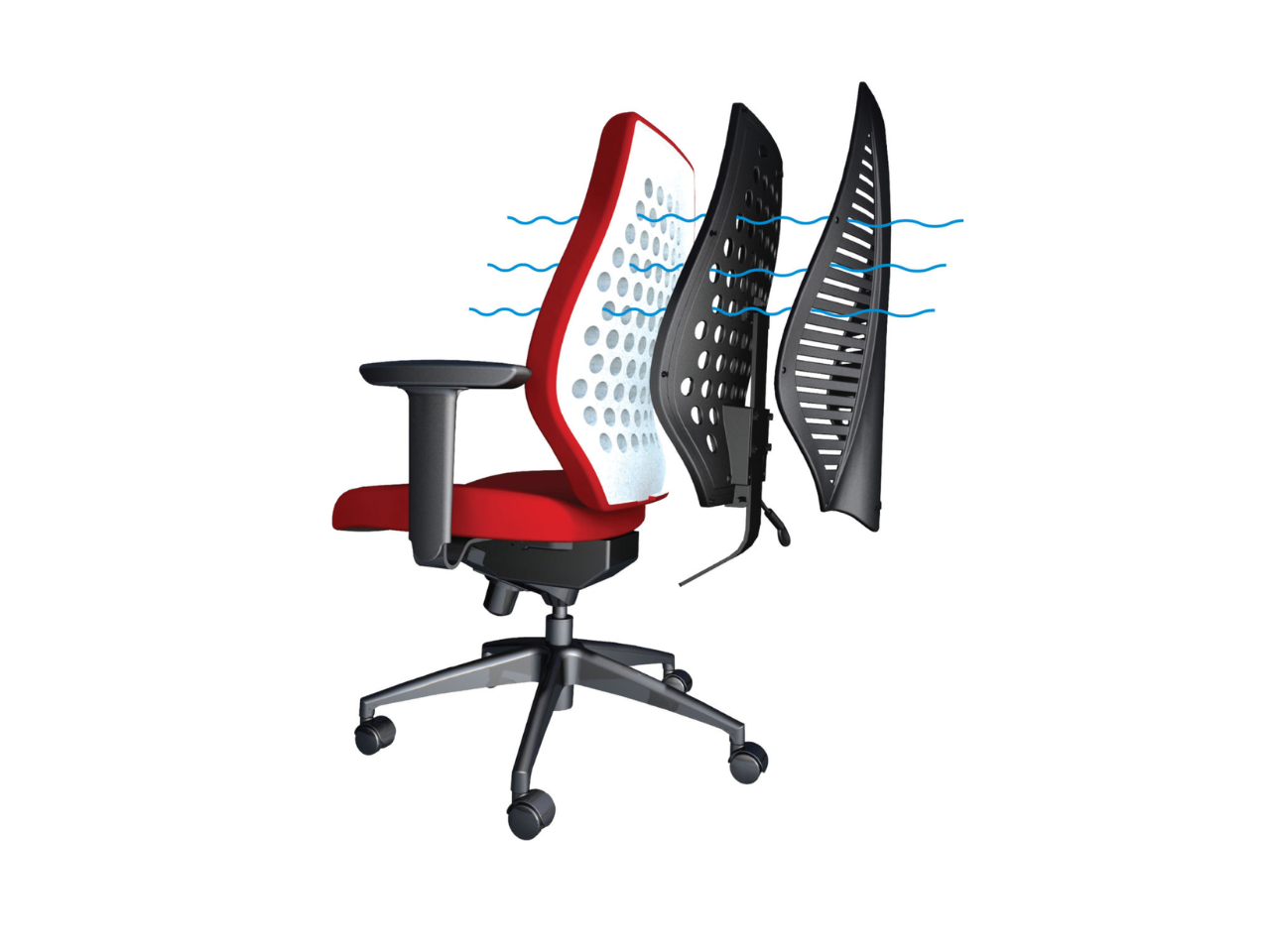 All the benefits of airflow and the proven ergonomic support of a foam and fabric offering, now with improved comfort and appearance. The airCentric 2 combines a sophisticated aesthetic with modular design, full adjustability and airflow comfort.