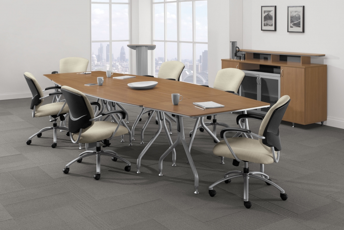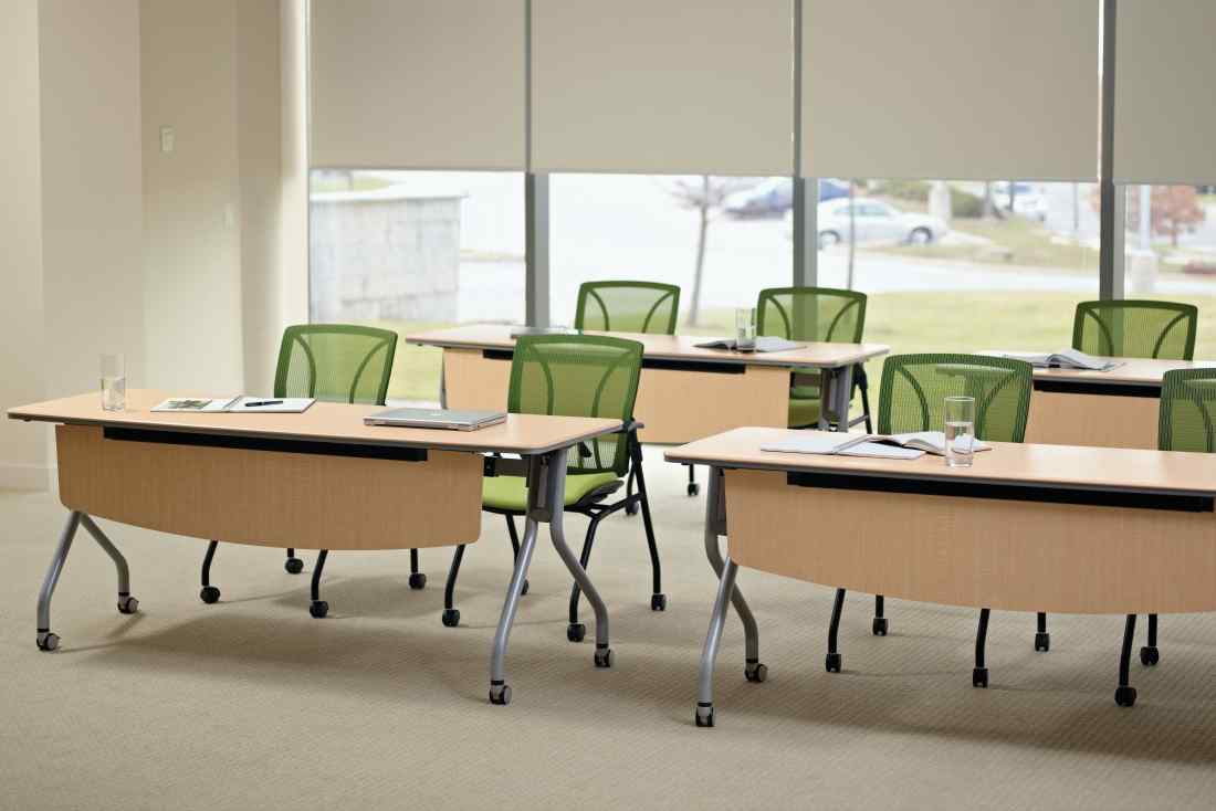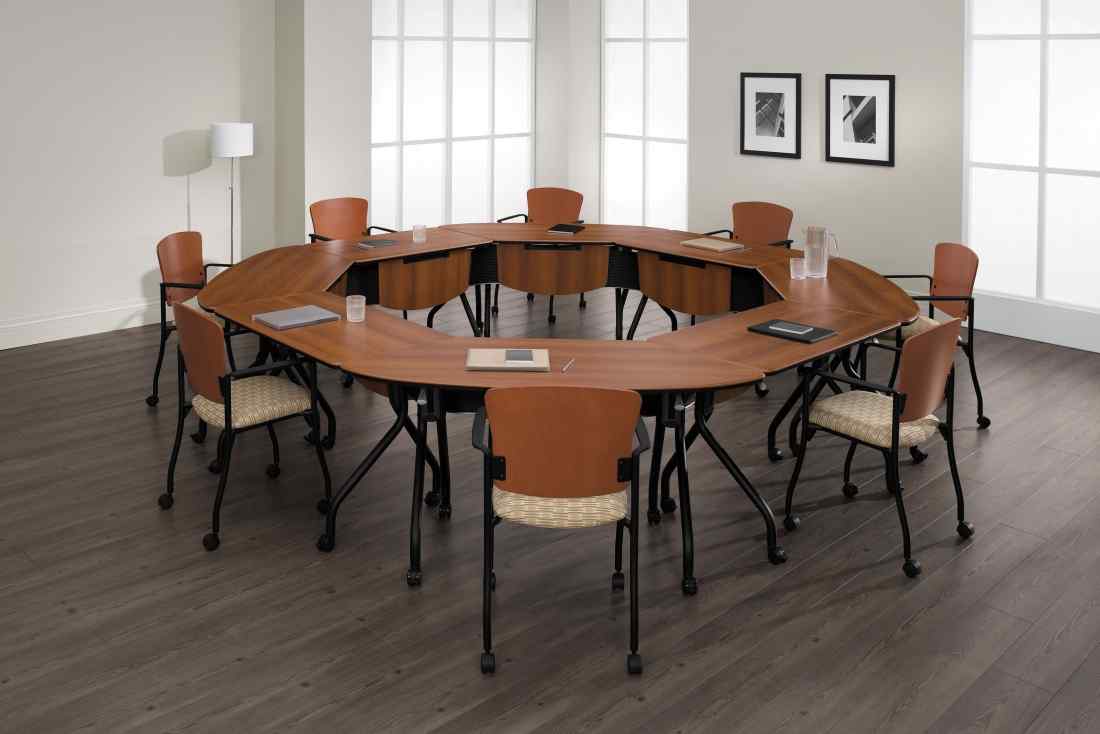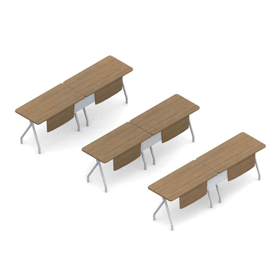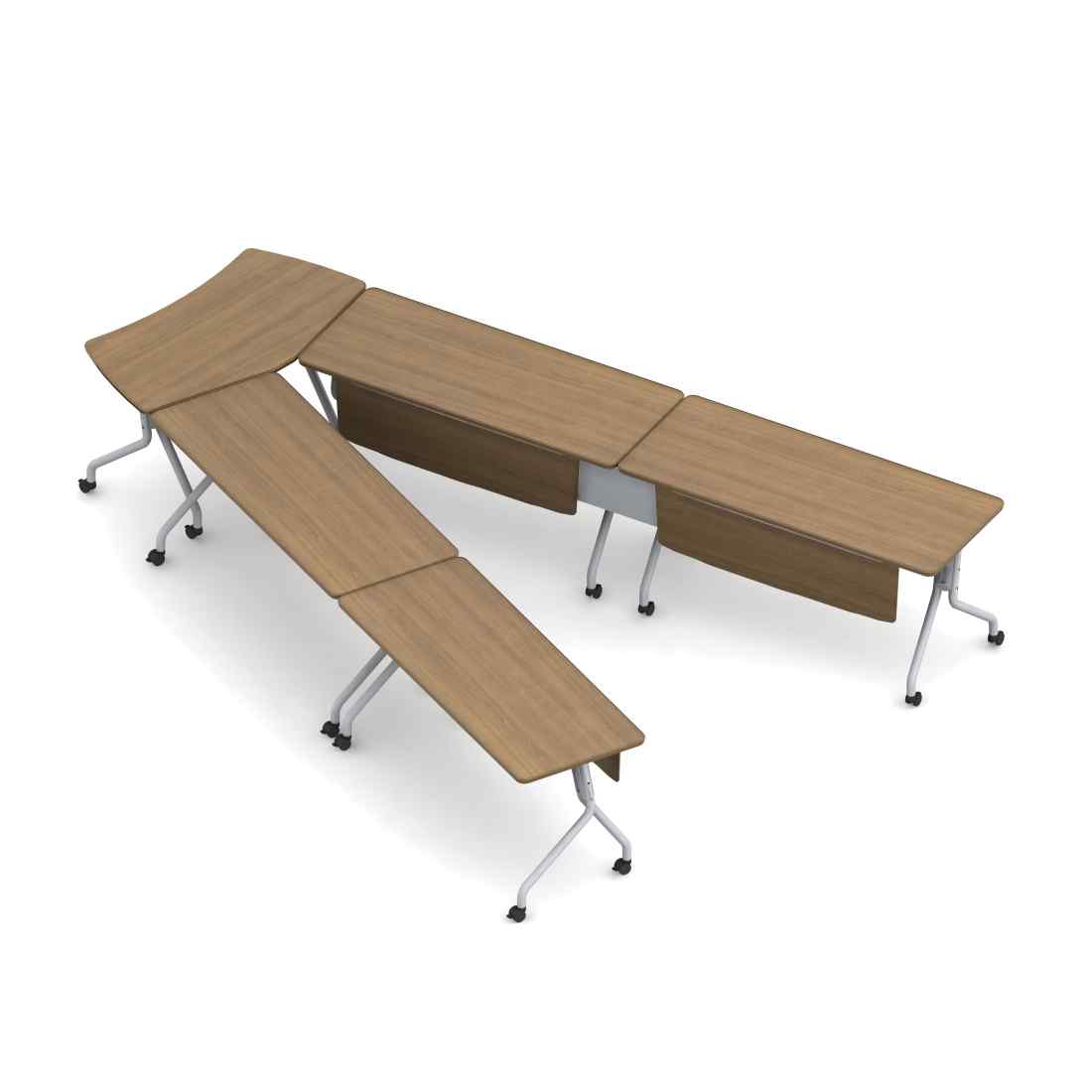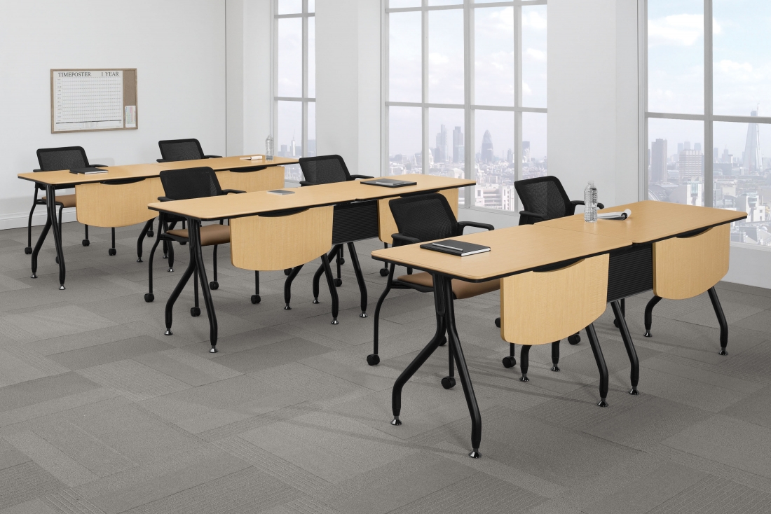 The Bungee Series is designed to allow quick and easy reconfiguring of table settings without using any tools. The multi-usage tables are an affordable investment for growing companies looking for versatile and efficient meeting solutions. Ideal for classrooms, training rooms and boardroom settings, Bungee can be set up to suit almost any need. Individual tables are available in a wide range of surface shapes. Optional curved or rectangular shaped modesty panels provide privacy when seated. At the end of the day Bungee tables can be nested together and put away.