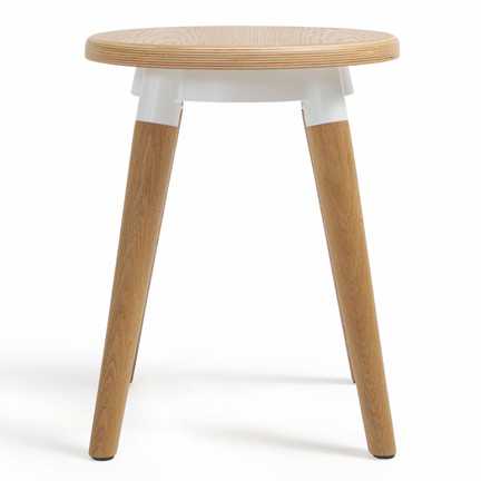 Copine mid-century modern backless side stools are perfect for meeting/collaborative, cafe, and break room areas. They are available with a wooden or an upholstered leather/fabric seat, and are finished in your choice of 21 wood veneers contrasted with 19 epoxy metal finishes.