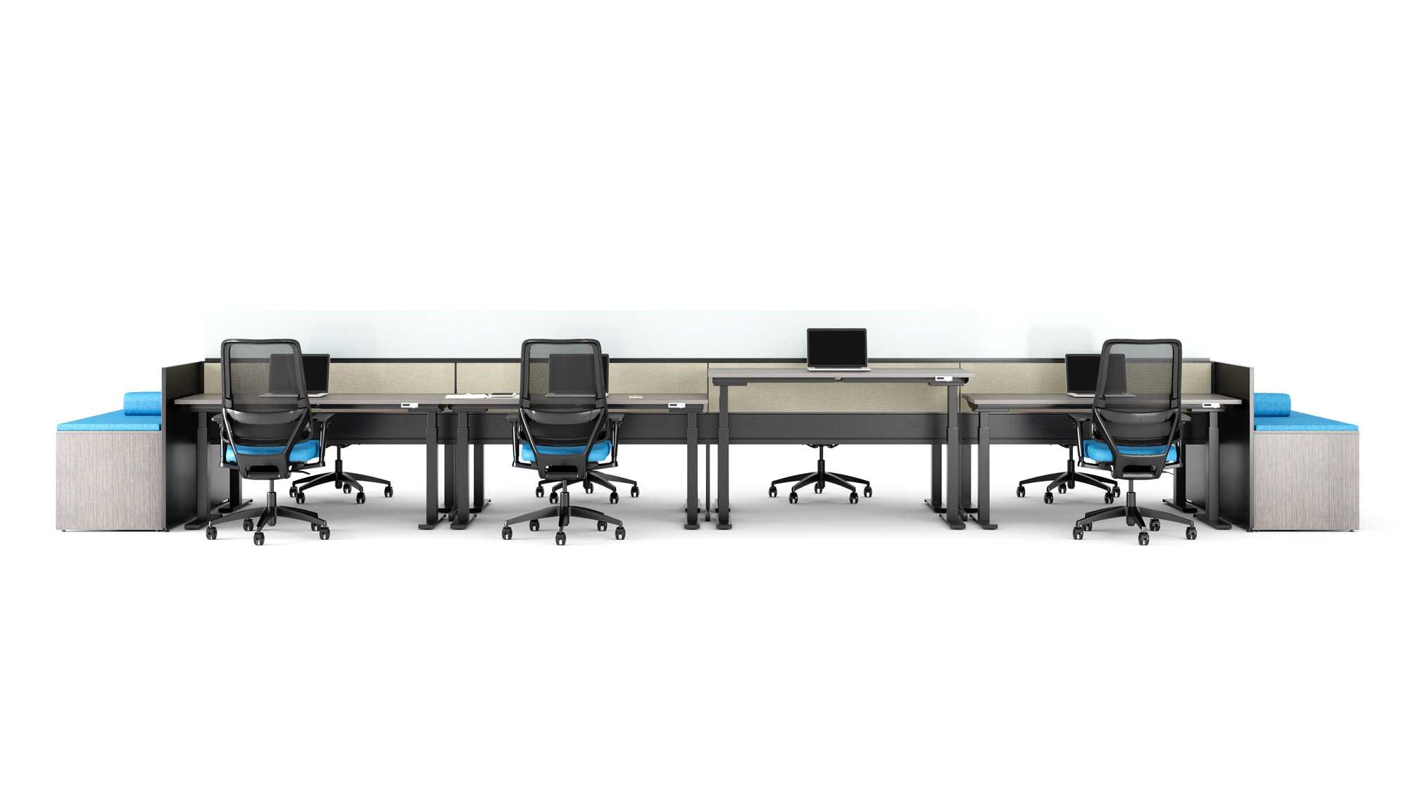 Today’s workplaces are evolving along with the needs of the people who inhabit them. Spaces need to flex and adapt to support how, where, and when people want to work, from open concept benching/desking to modular workstations, to private offices. Evolve offers tailored solutions that shape space, connect people, and support new ways of working. From huddle areas to project rooms to open workstations, Evolve provides spaces to support different ways of collaborating within the office. Good planning and a great product can achieve a lot in a small amount of space without actually seeming small. This is where Evolve’s broad selection of panel types and sizes, worksurfaces, storage elements, and accessories, as well as its ability to integrate with other Global casegood/workstation systems, maximize your options and your available budget. Evolve offers a competitive and environmentally sustainable solution that is truly unique. The simplicity and flexibility of Evolve’s design enables reconfiguration of a space with the same components to keep long-term costs low. Evolve’s comprehensive product offering creates complete office landscapes that can adapt to change.