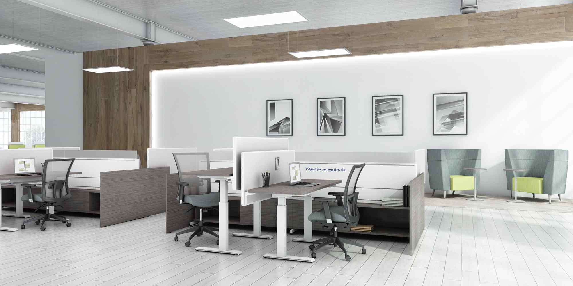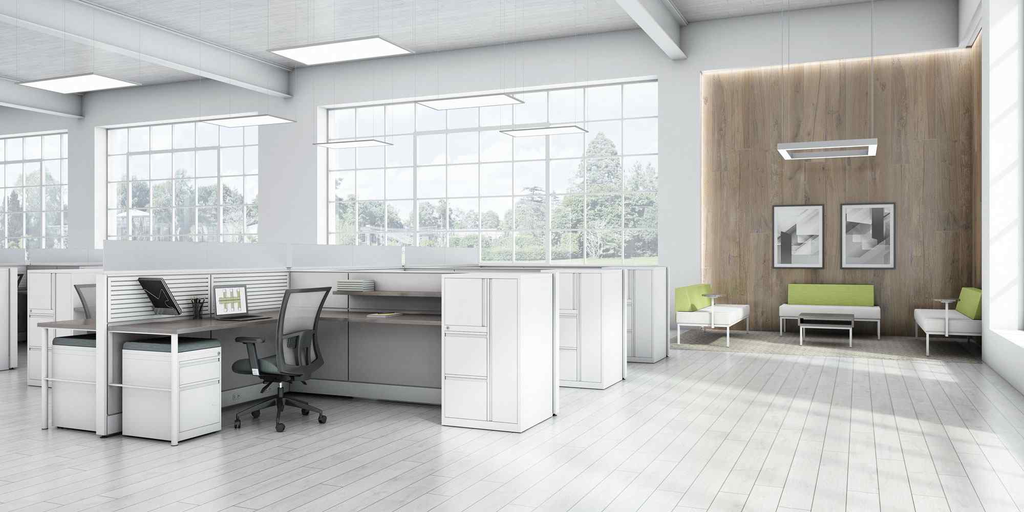 Engineered for the way people work, Evolve Panel System meets the challenges of today’s rapidly changing workplace. As your business grows, Evolve Panel System grows with it. Featuring a crisp, clean, and modern aesthetic, Evolve is designed to provide limitless planning possibilities for a greater return on investment. Make the most of small footprints with efficient space and storage possibilities and create a complete office floor plan using a single line!