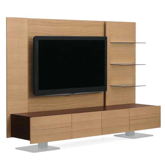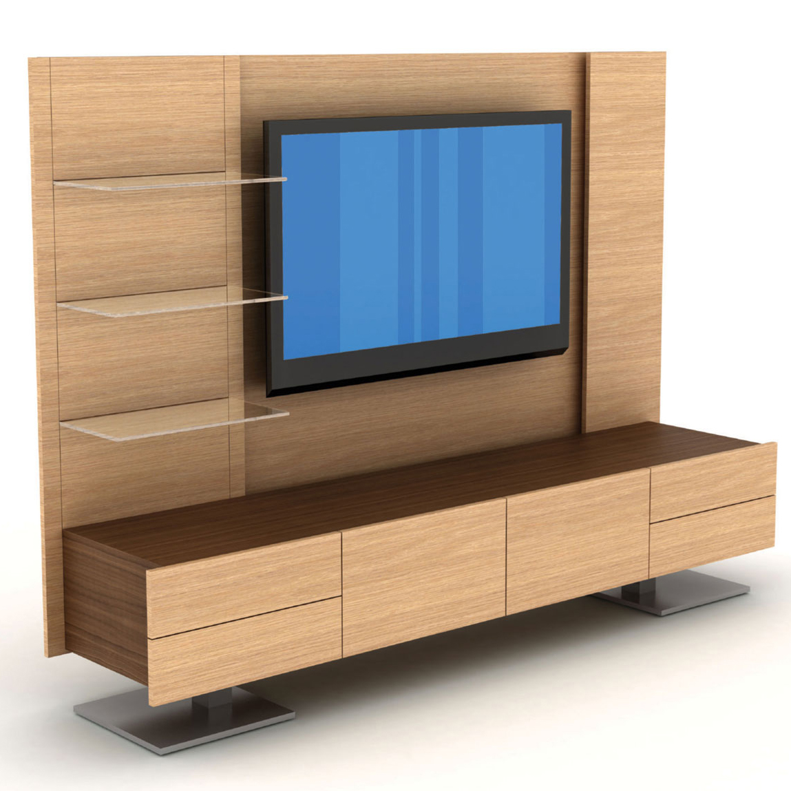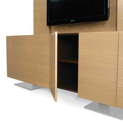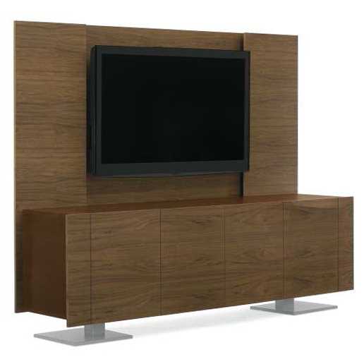Foundations series media walls create a modern and professional meeting/presentation/conference space, and feature a credenza + display wall with an optional monitor mount and/or open shelves or cabinets. The credenzas can be configured with cabinets or cabinets/box drawers. Foundations media walls are available in a variety of wood veneers, with optional two-tone finishes. Sizes range from 66" or 72"H x 72"-90"W x 24"D.