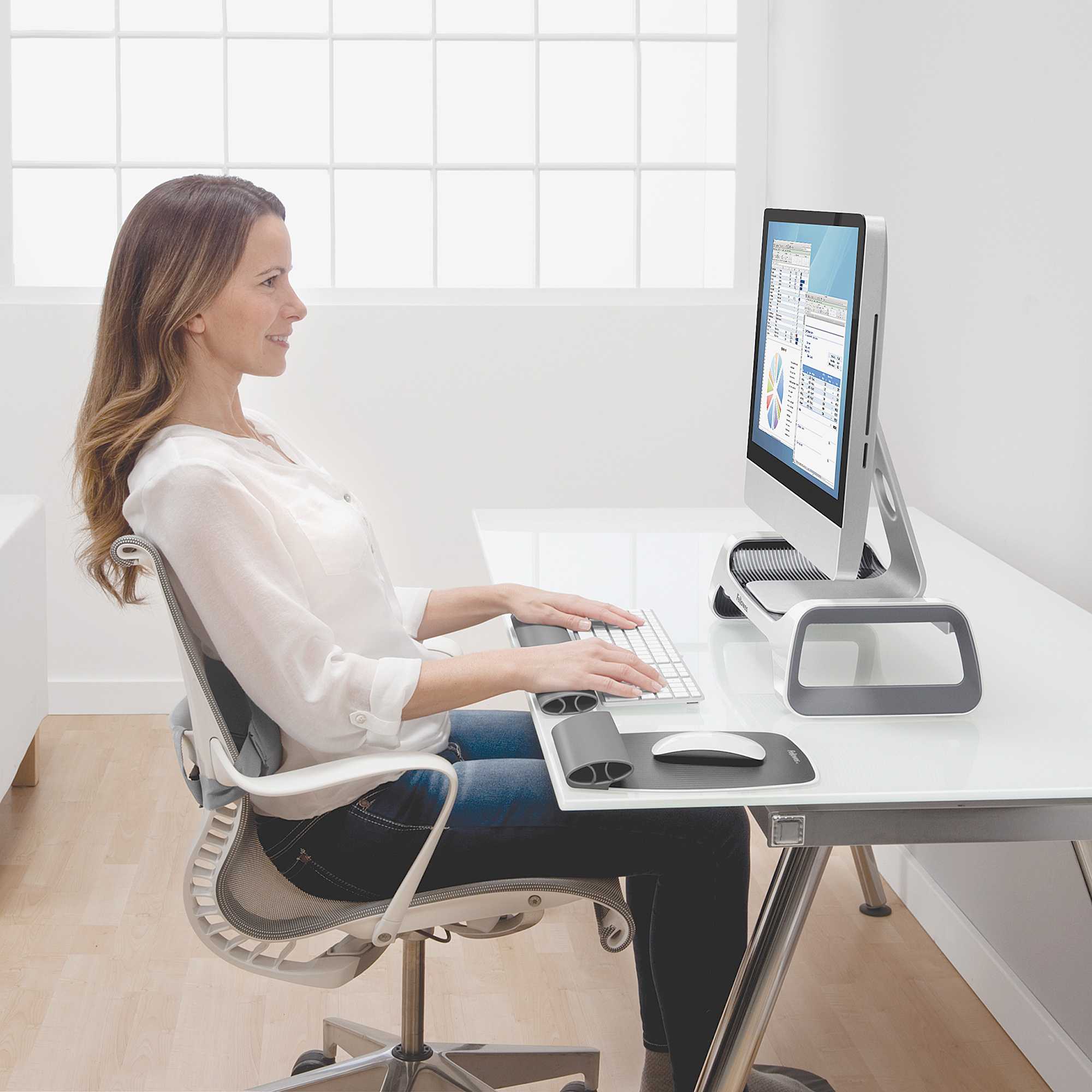 I-Spire Monitor Lift by Fellowes designed to reduce neck strain and shoulder stiffness elevating the monitor 3 3/8".