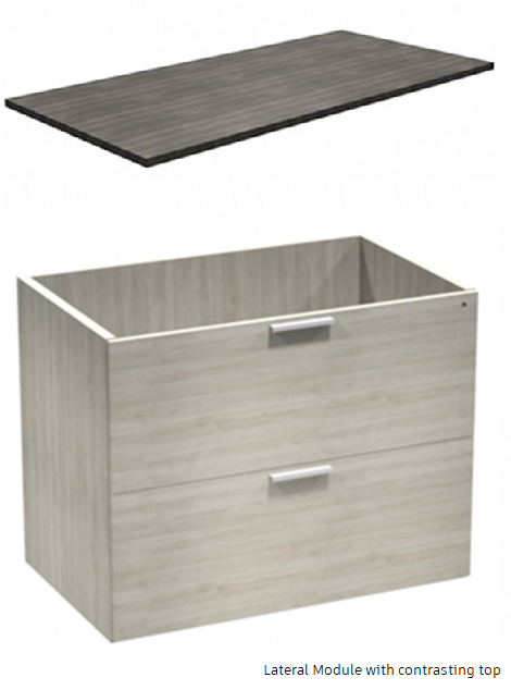 - Contrasting tops are also available, simply specify two different finishes for the module and the worksurface top