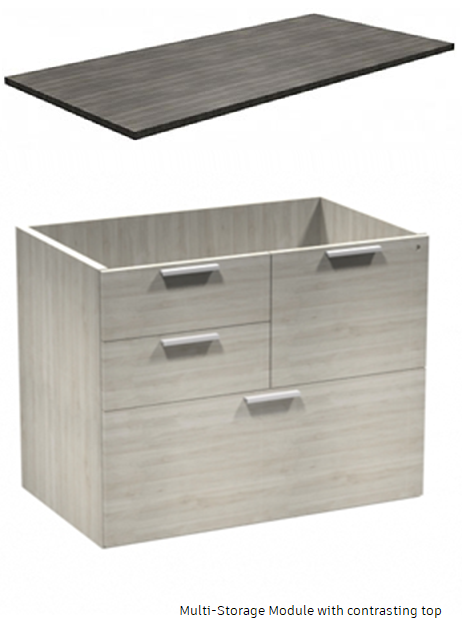 - Contrasting tops are also available, simply specify two different finishes for the module and the worksurface top