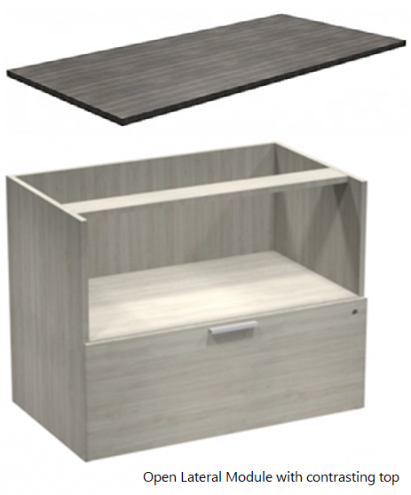 - Contrasting tops are also available, simply specify two different finishes for the module and the worksurface top