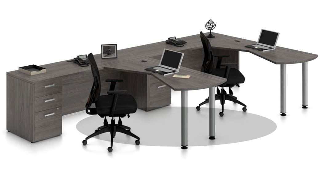 Some of the many components in the Ionic series are desk shells, table desks, bullet top desks, height adjustable sit-to-stand table desks, credenzas, returns/bridges, pedestals, storage/filing units, bookcases, hutches, modesty panels, and more!