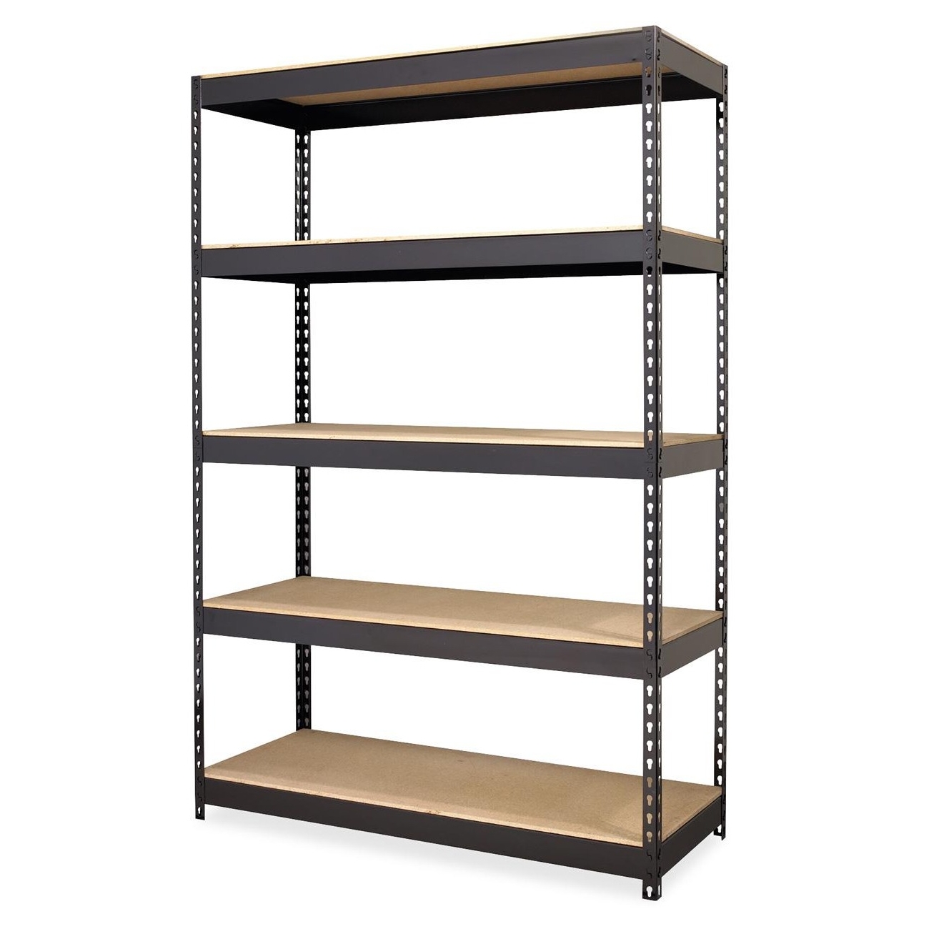 Riveted Steel Shelving offers sturdy storage space for your heavy supplies. Shelving unit includes five shelves and holds a total capacity of 3,800 lb. of evenly distributed weight with its heavy-duty, riveted steel construction.