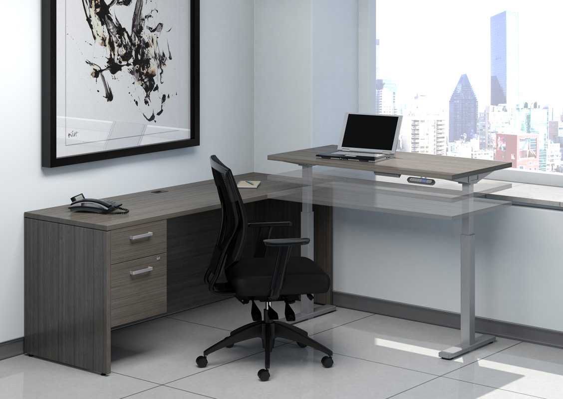 - Quick assembly 2-leg, 2-stage electric height adjustable table base.