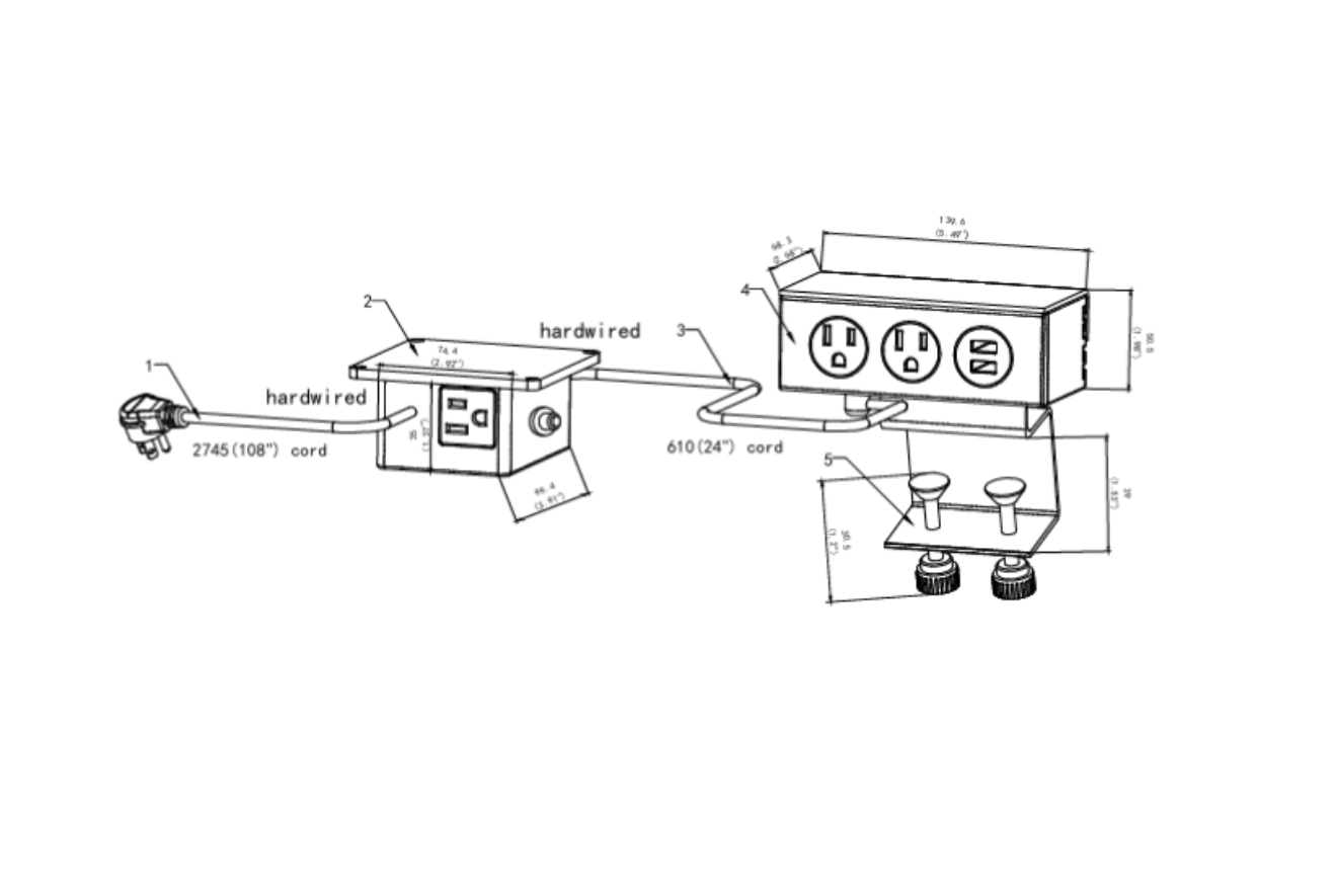 • Wire distance between the socket box and the adjustable box is 18" (457 mm) SJT #14 cord