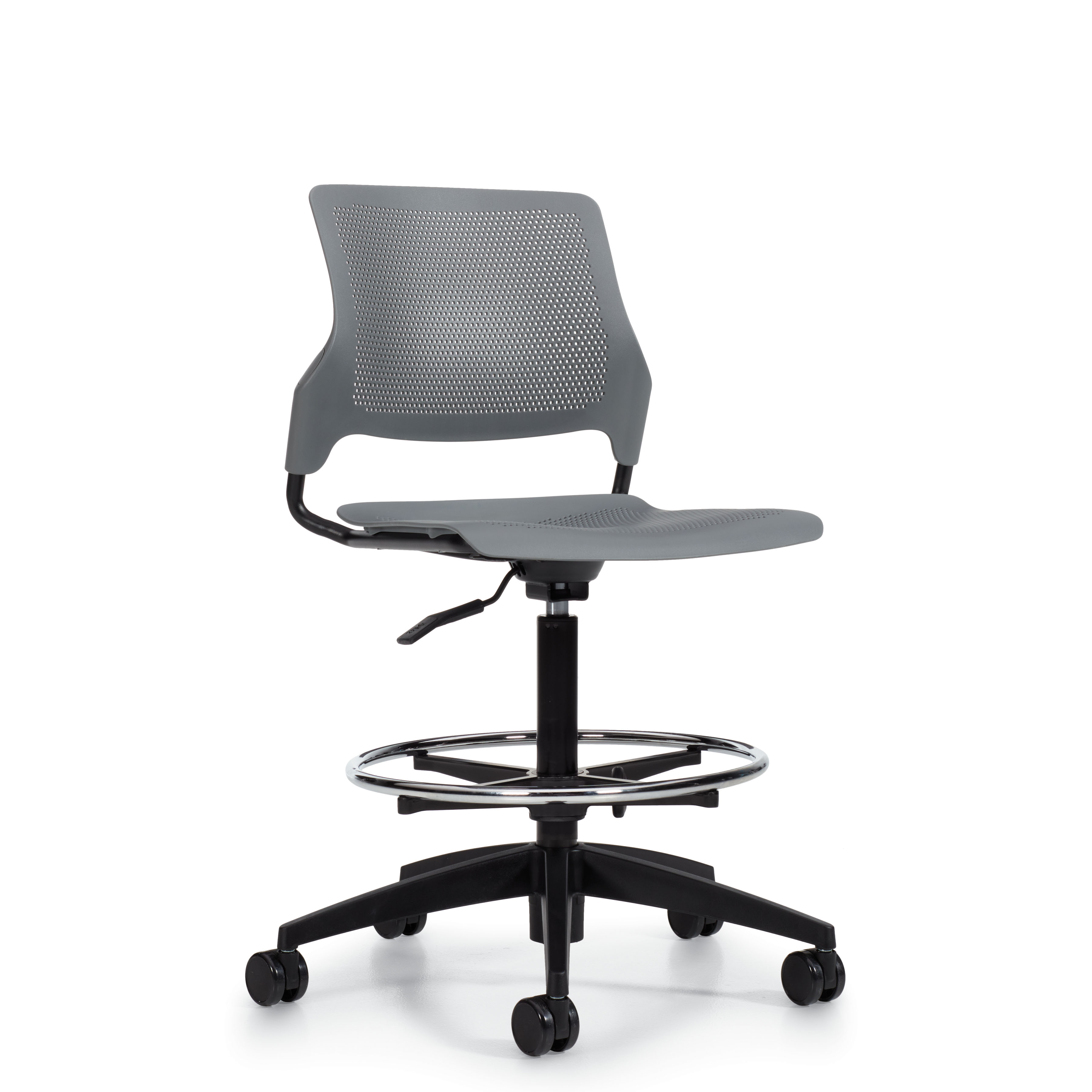 - Height-adjustable stools feature a task mechanism.